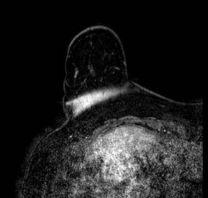 - T1 shine-through: blood products, proteinaceous fluid, mucinous tissue, silicone, or incompletely suppressed fat remain high on subtraction without gadolinium uptake